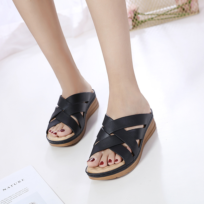 Summer women’s slippers with slope with large size middle-aged and elderly shoes non-slip fashion soft bottom women’s sandals
