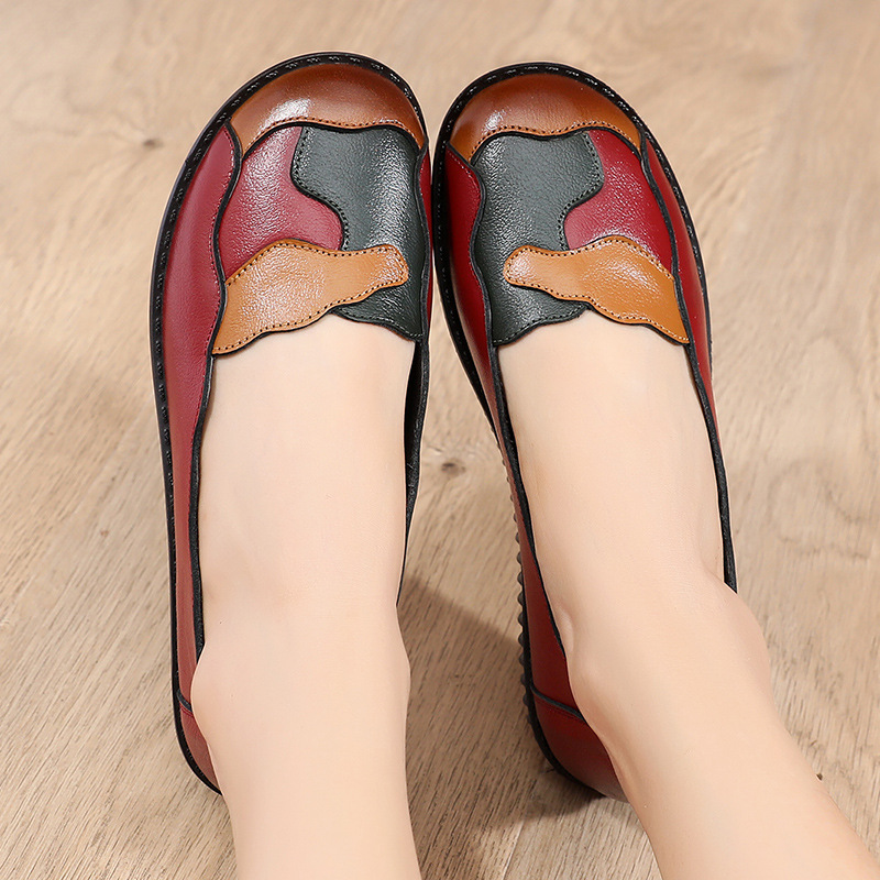 Spring Autumn Leather Shallow Pointed Soft Bottom Women Comfortable Flat Shoes Female Loafers Slip On Flat Heel Single Shoes