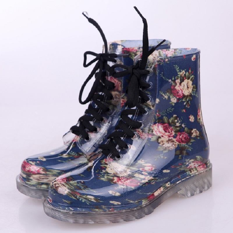 HomeFashion new women Floral Martin rain boots female fashionable short boots slip non-slip comfortable with large size water shoes