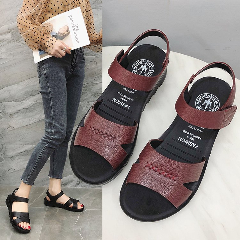 Female Summer Shoes Women Leather Casual PU Hook Loop Soft Bottom Walking Shoes women comfortable old shoes mother flat sandals