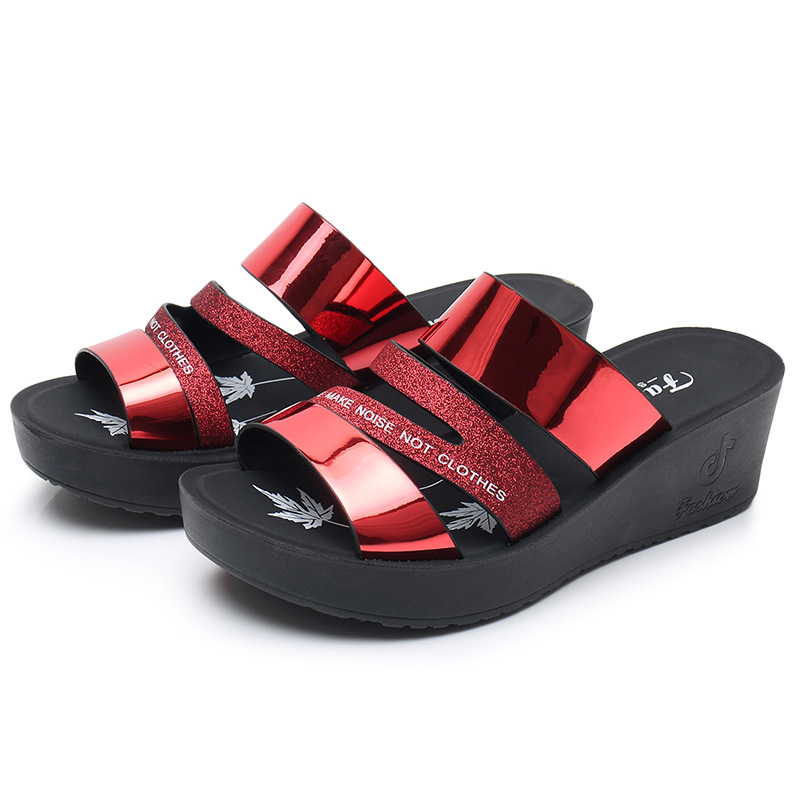 Summer leather soft-soled beach women’s slippers lightweight and comfortable mid-heel wedges non-slip open-toe women’s sandals