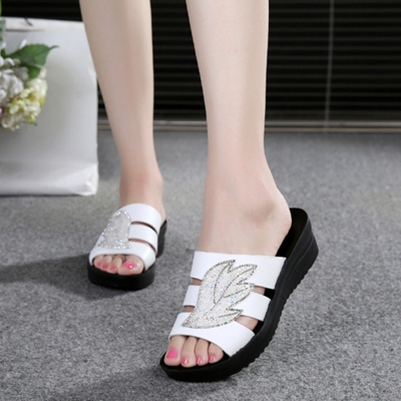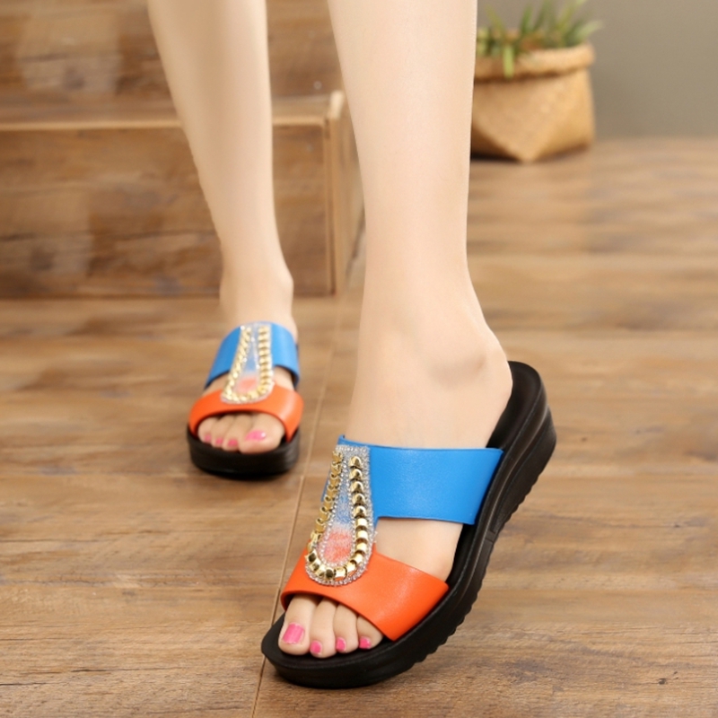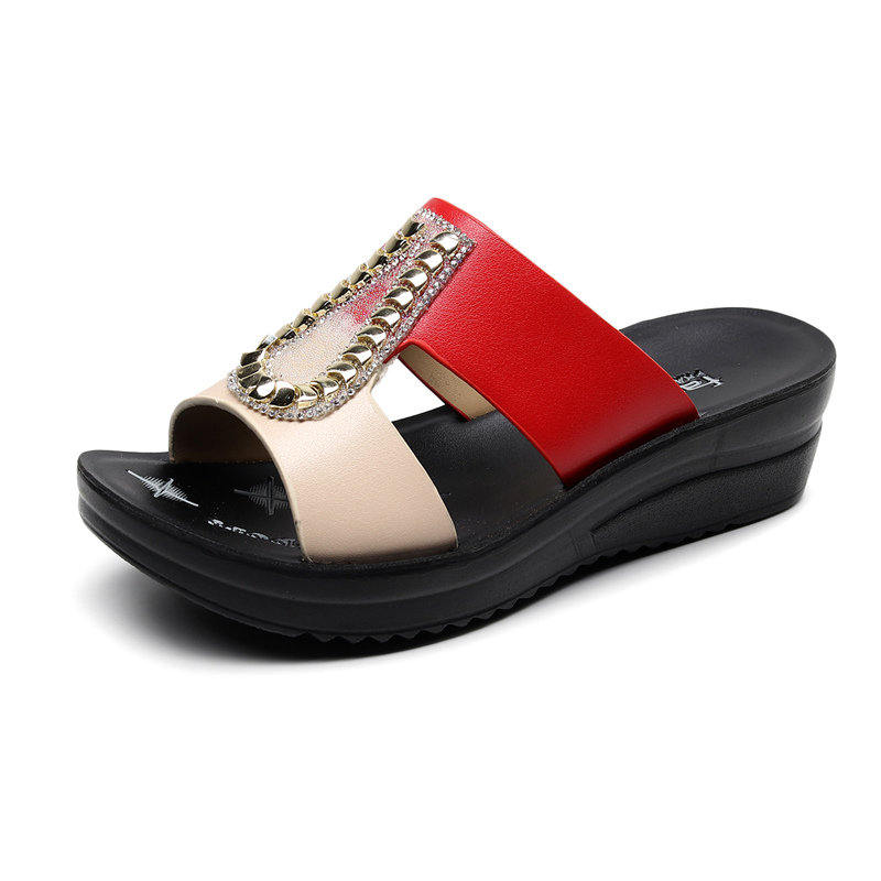 Summer casual slope with women’s sandals and slippers thick-soled mother sandals with rhinestone breathable women’s slippers