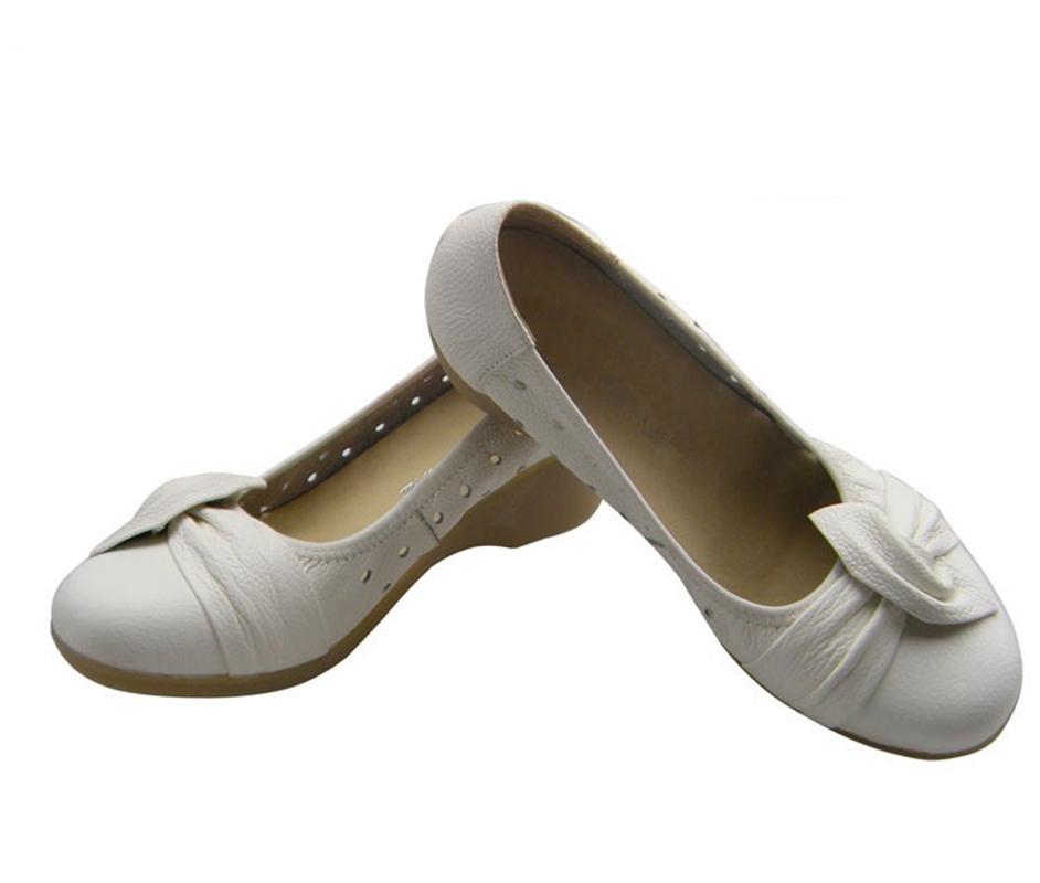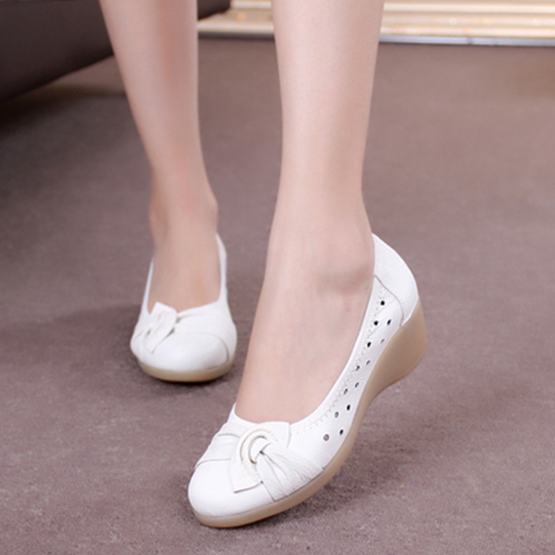 Genuine Leather Women Shoes Fashion Women’s Round toe High Heels Wedges Shoes Woman Slip On Casual Shoes Mom Shoes Free Shipping