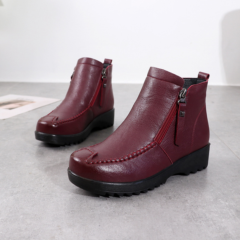 Genuine Leather Women’s Snow Boots Fashion Warm Short fur plush Winter Ankle Boots Ladies Shoes mother large size boots 41