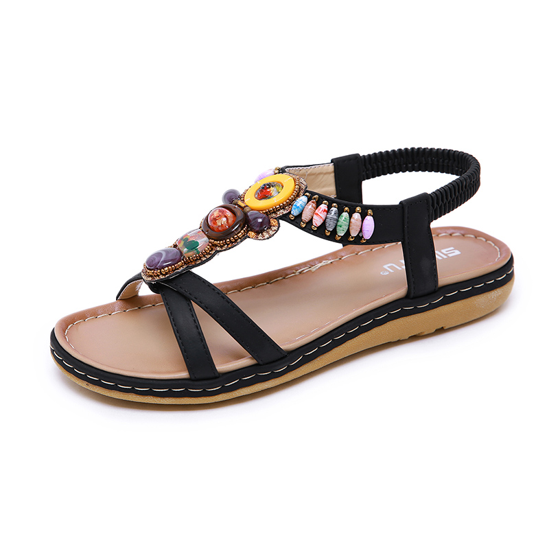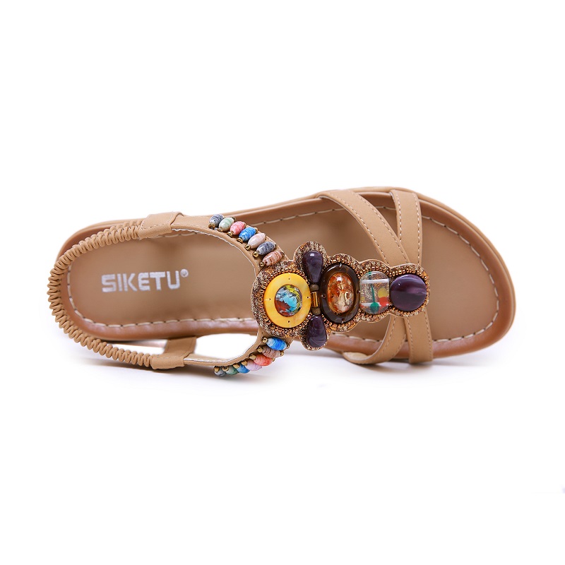 SIKETU ethnic style cover heel sandals women flat low-heeled sandals wild summer new Roman women’s shoes bohemian beach sandals