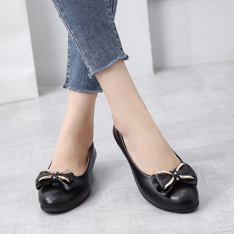Spring autumn new leather mother flat single shoes middle-aged soft comfortable large size woman shoes grandmother flat shoes
