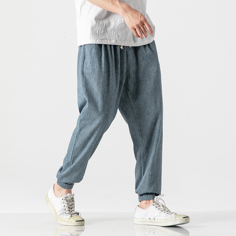 New Men Summer Cotton Linen Harem Pants Fashion Baggy Casual Loose Cropped Pants Drawstring Male Trousers Streetwear