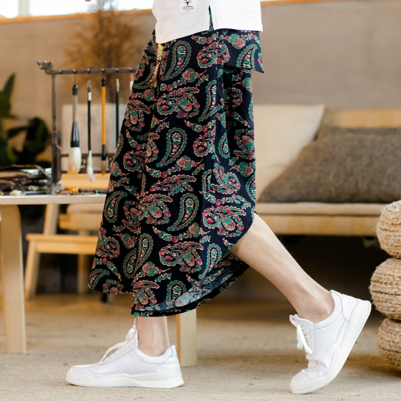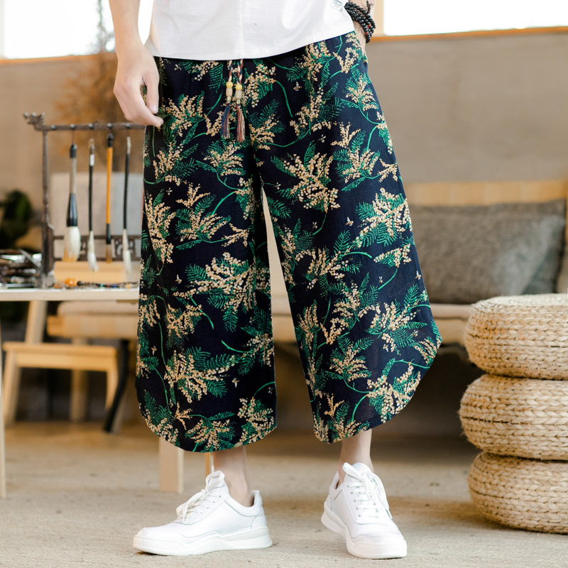 Streetwear Chinese Style Man Linen Harem Pant Trouser Men Casual Wide-Legged Bloomers Summer Male Trousers