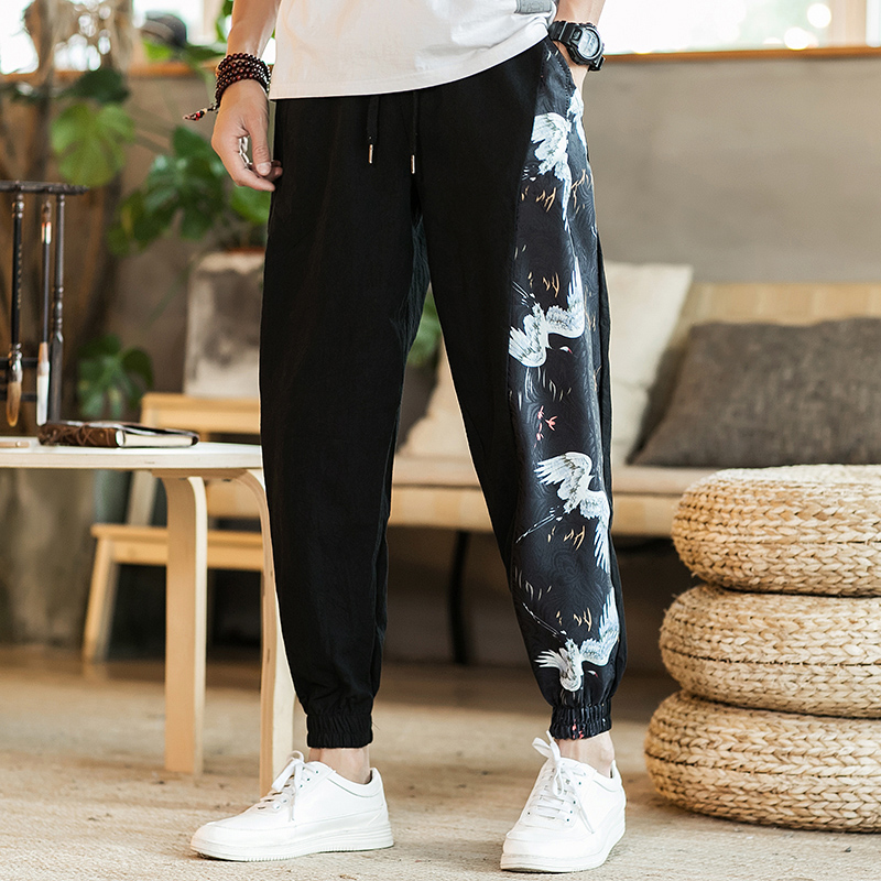 Chinese Style Man Cotton Linen Pants Mens Summer Style Print Patchwork Pants Male Casual Jogger Trousers