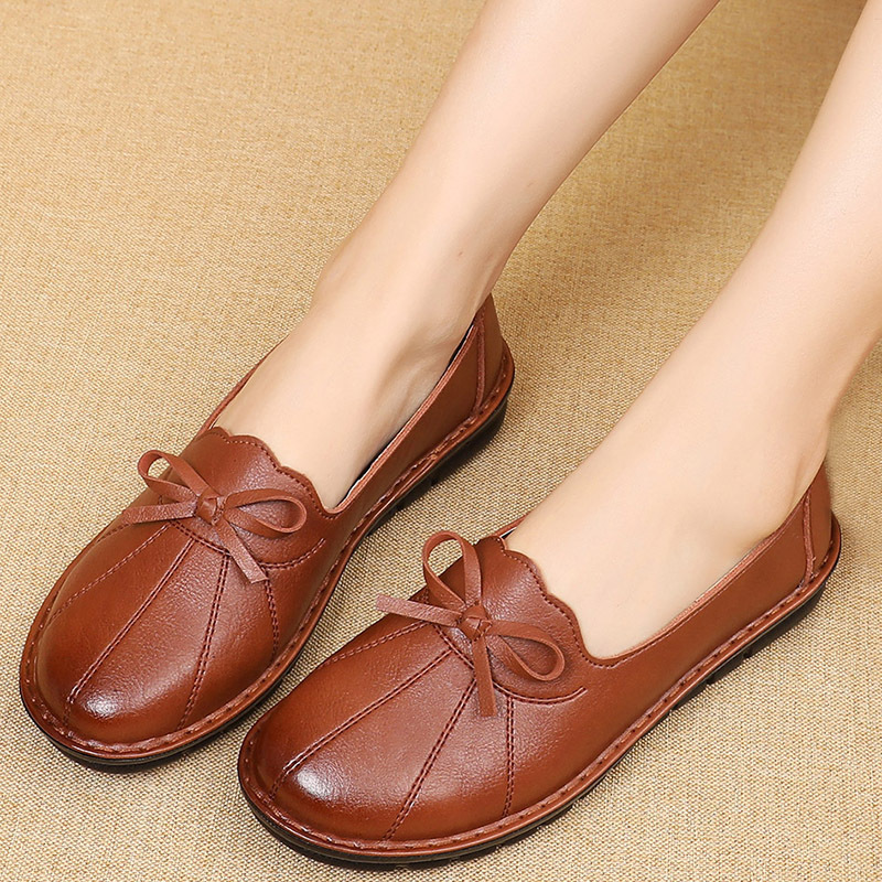 new Spring autumn fashion Genuine Leather Women Flat Shoes Ladies Soft Casual Slip On Work Shoes Mother single Shoes