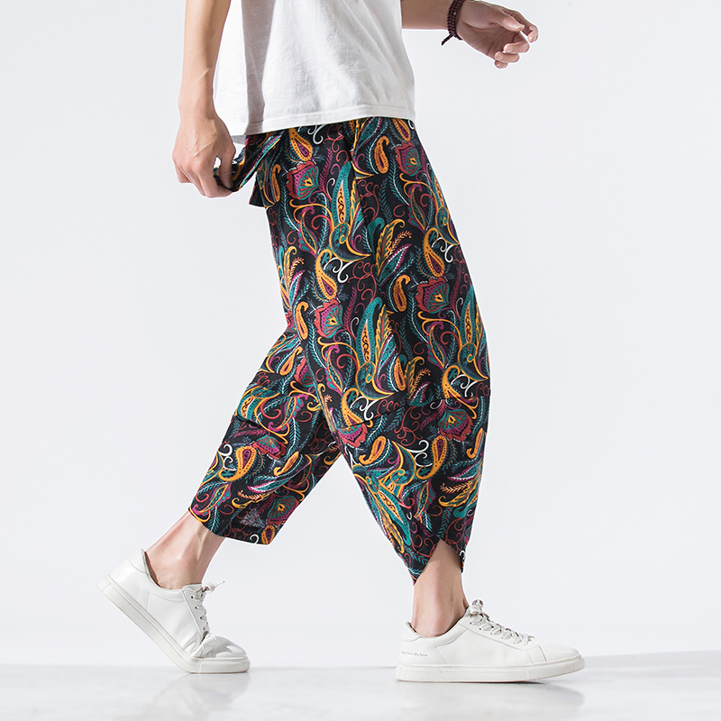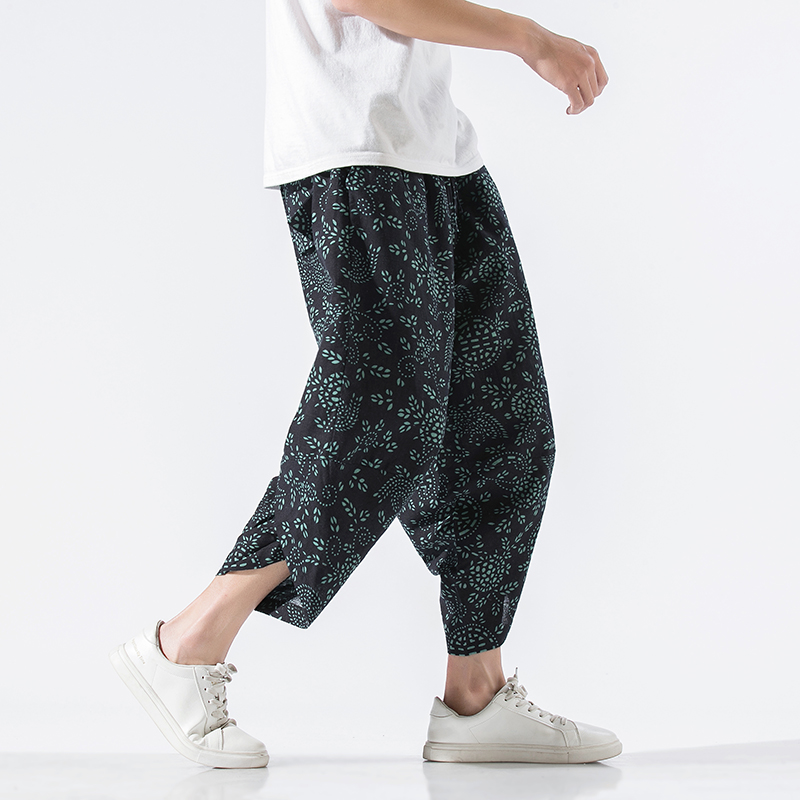 Summer Mens Wide Leg Crotch Pants Male Casual Harem Pants New Fashion Cotton Linen Men Jogging Pants Large Size M-5XL