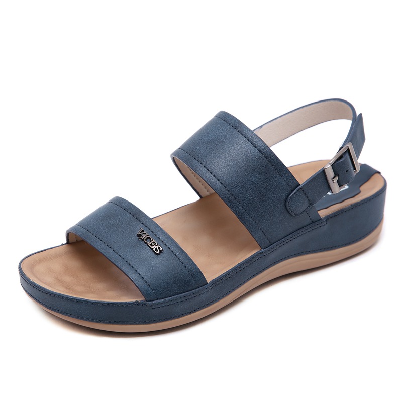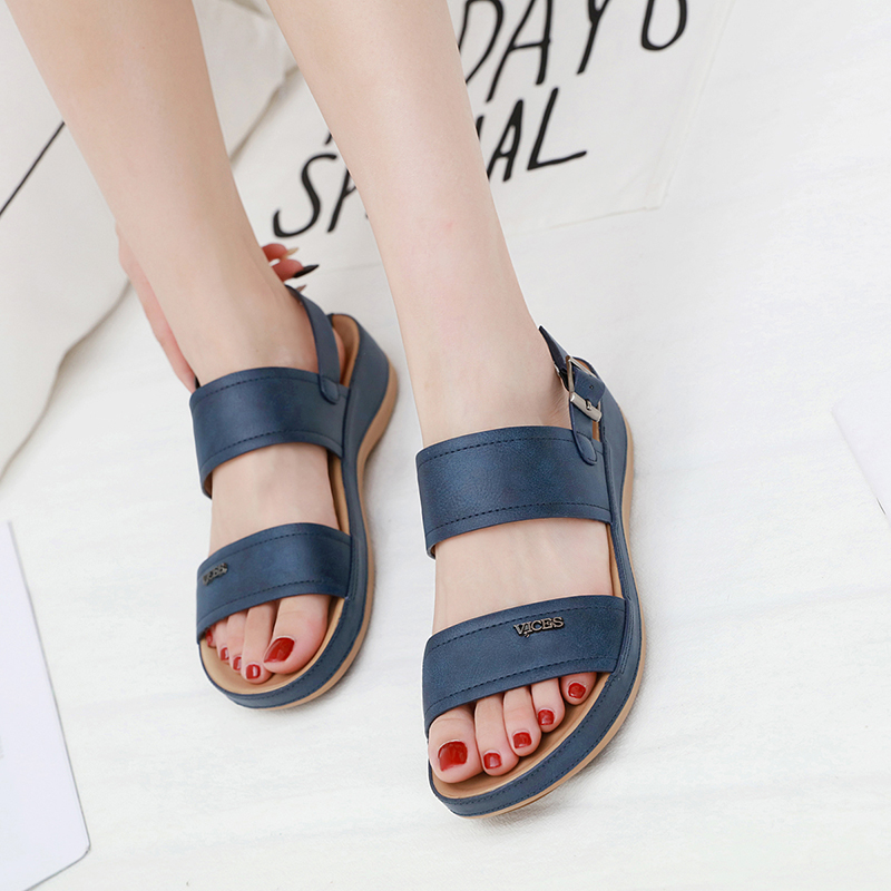 Women Sandals Summer Fashion Leathe Open Toe Round Toe Wedges Sandals Shoes Women Beach Casual Slipper Low Heels Walking Sandals