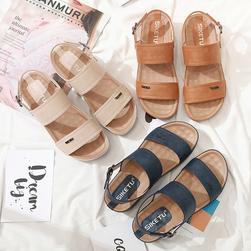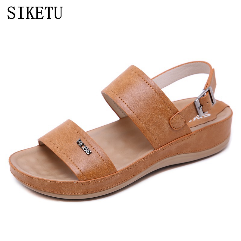 SIKETU New Summer Women’s Sandals High Quality PU Leather Flat Mid Heel Fashion Outdoor Women Sandals Mom Sandals