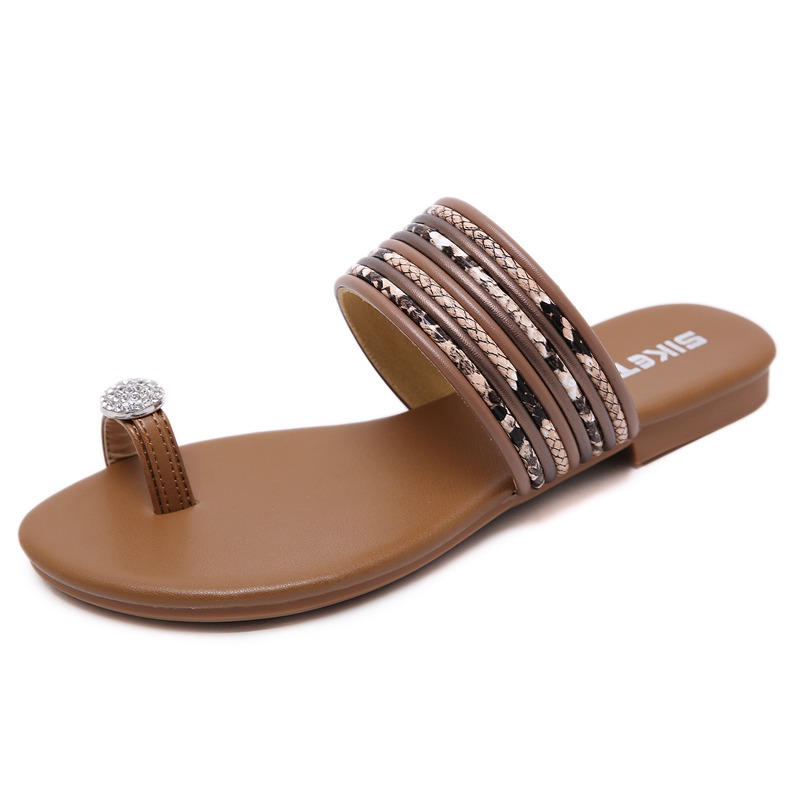 SIKETU new summer women’s slippers outdoor fashion set of toe rhinestones ethnic style comfortable low heel beach women sandals