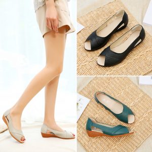 Women’s Summer Leather Open Toe Casual Slippers Woman Soft Bottom Beach Slip On Sandals Mother Wedges Slippers free shipping