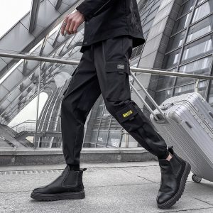 Streetwear Harem Pants Men Ribbons Casual Pants Men Slim Black Joggers Pants Side-pockets Man Trousers Spring