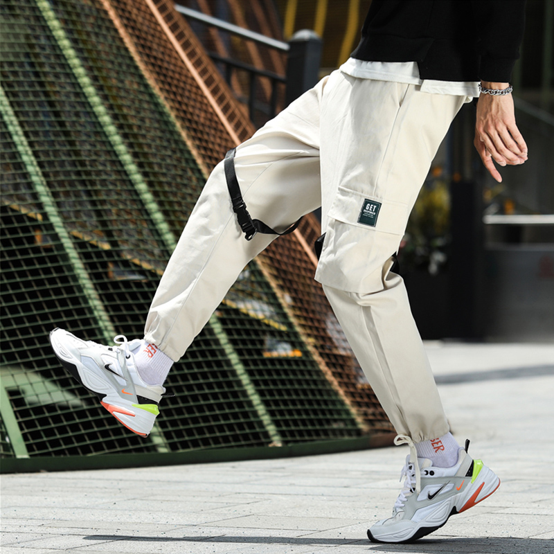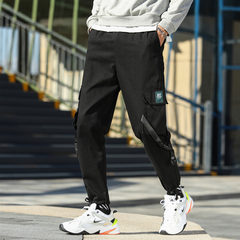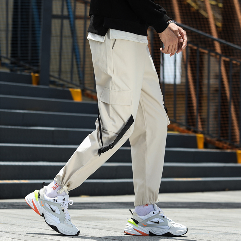 Men Japanese Streetwear Cargo Pants Spring Overalls Mens Ribbons Hip Hop Harajuku Harem Pants Sweatpants Pants Men Trousers