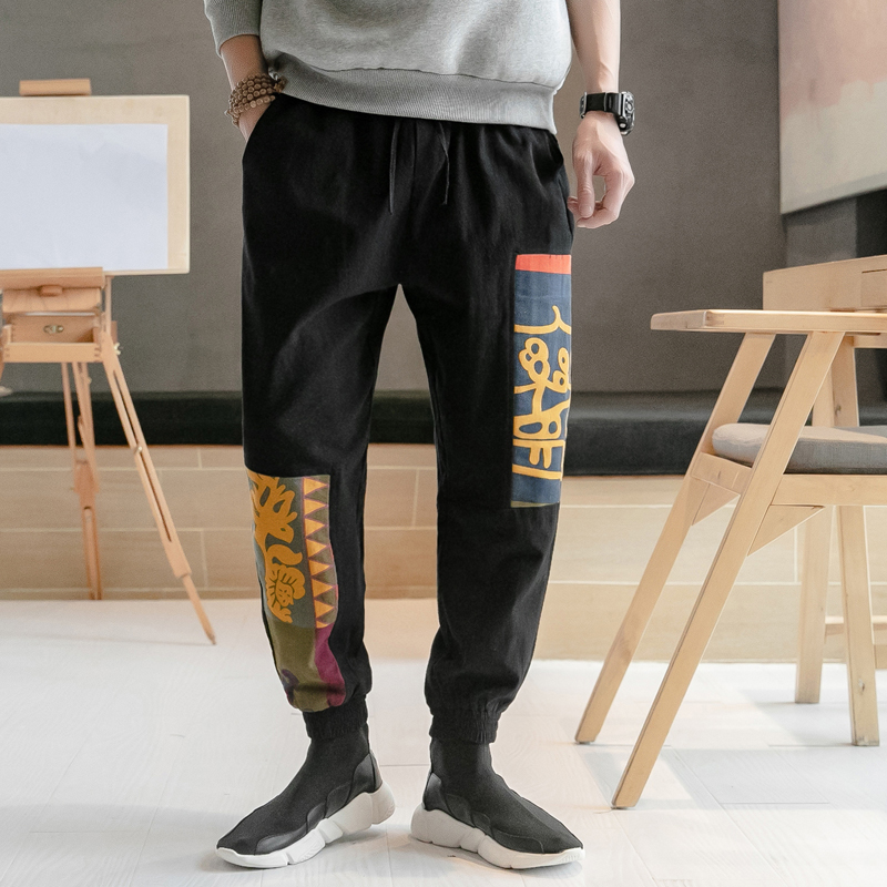 New Design Men’s Harem Pants Chinese Style Leisure Trousers Men Summer Loose Printing Jogging Pants Male Large Size 5XL