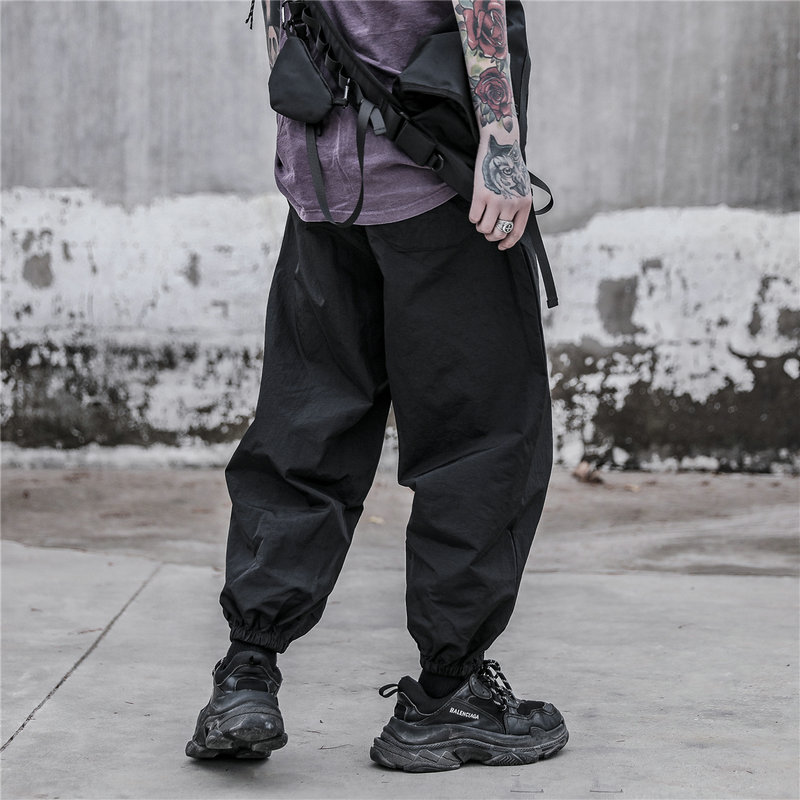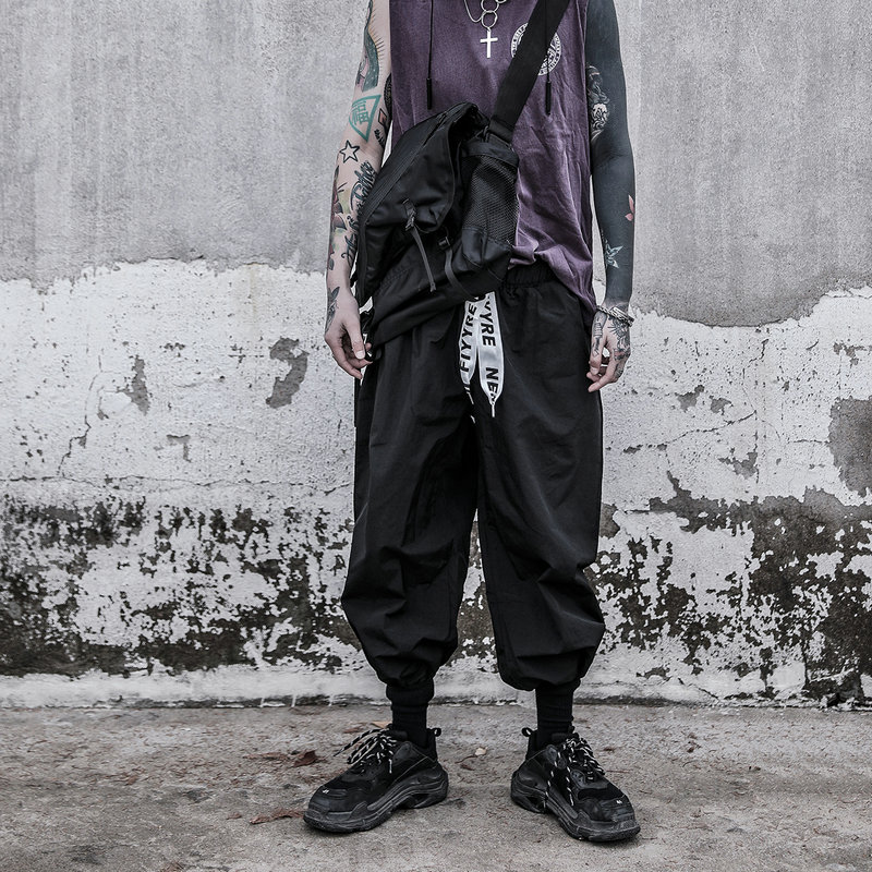 Streetwear Harem Pants Men Ribbons Casual Pants Men Slim Black Joggers Pants Side-pockets Man Trousers Spring