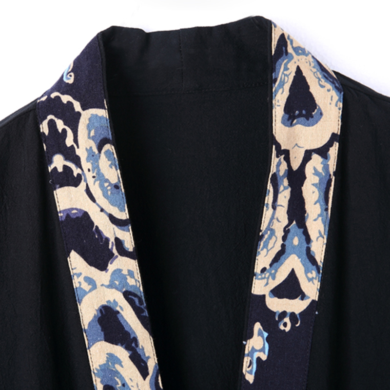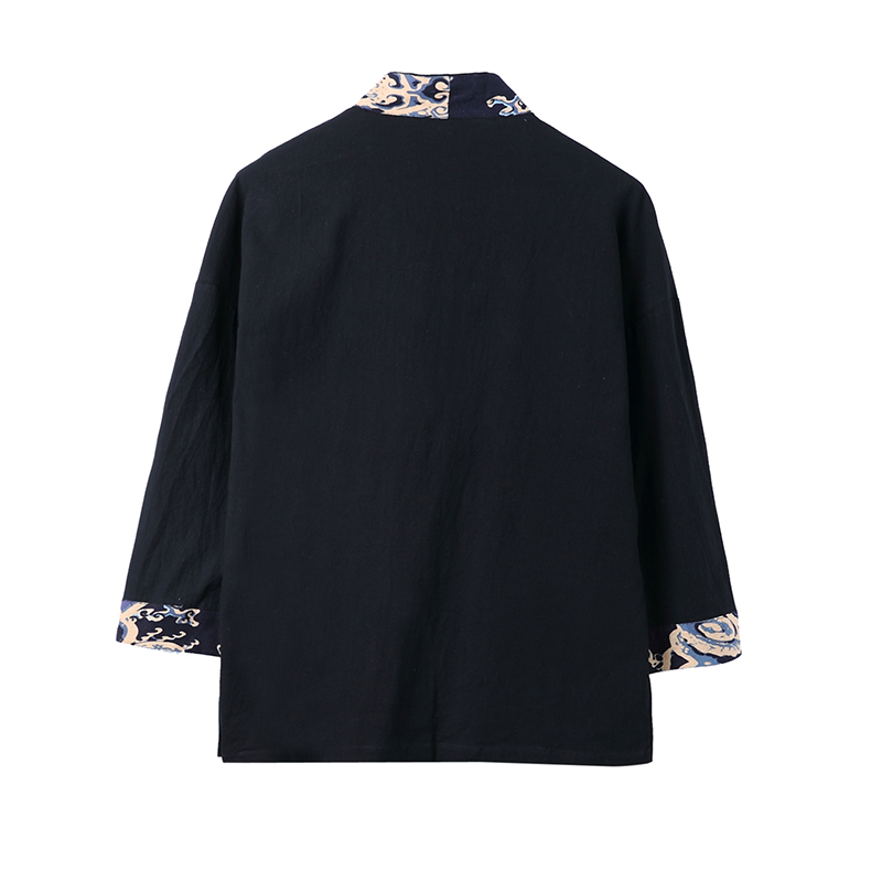 Streetwear V-Neck Mens Three Quarter Japanese-Style Leisure Shirts Male Fashion Printing Men Open Stitch Shirts Large Size M-5XL