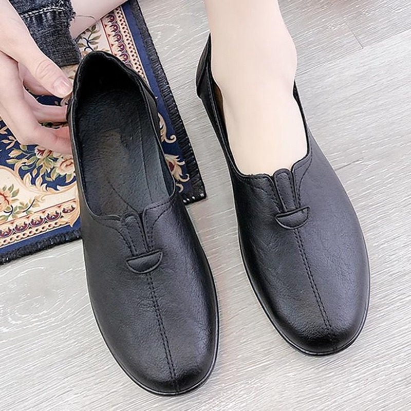 Women Shoes Spring/Autumn Woman PU Leather Flat Shoes Ladies Casual Slip-on Single Shoes Mother Soft Comfort Work Shoes