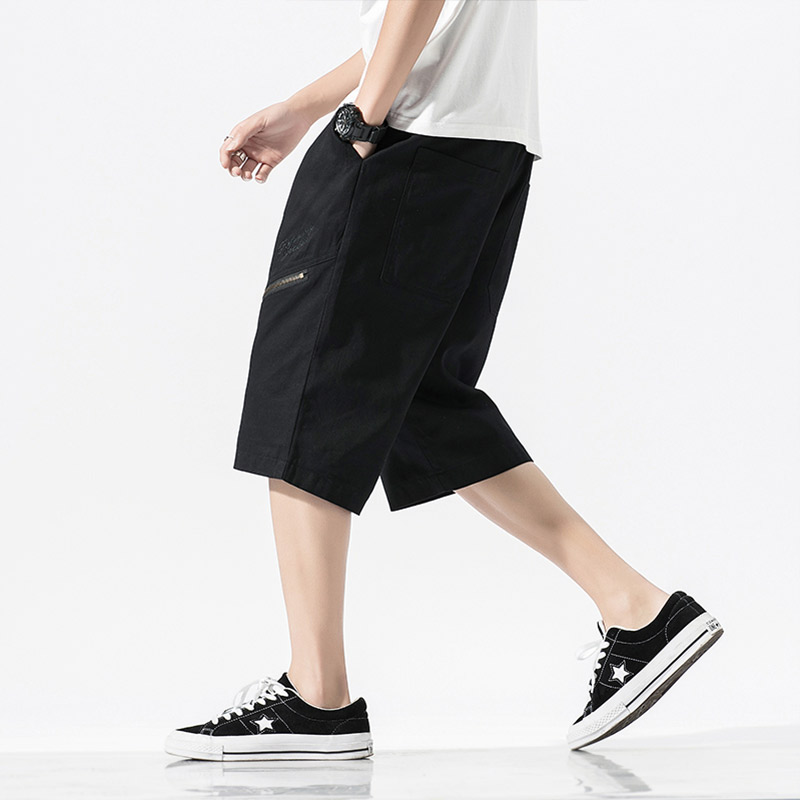 Cotton Mens Harem Pants Summer Male Casual Calf-Length Pants Printed Big Pocket Baggy Pants Trousers Men Streetwear