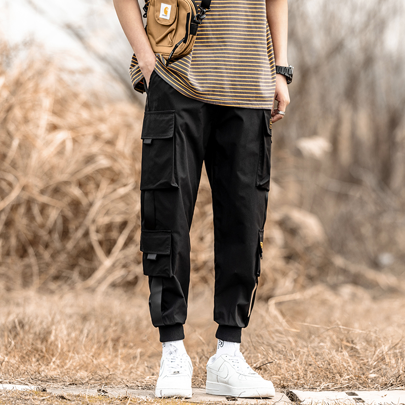 Cargo Pants Joggers Men Harem Pants Multi-pocket Ribbons Man Sweatpants Streetwear Casual Pants Elastic Waist Male Trouser