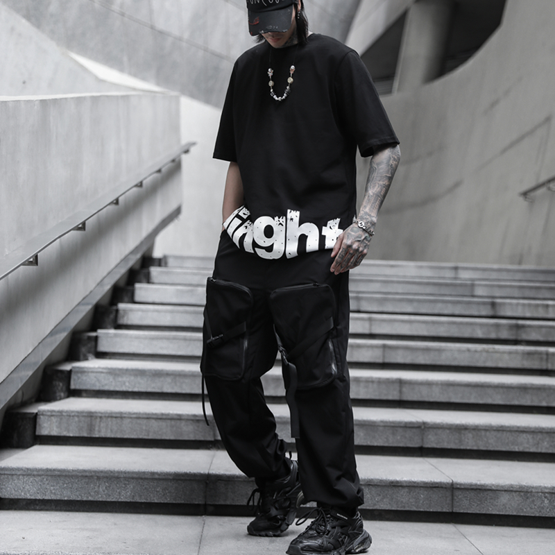 High Street Mens Hip Hop Harem Pants Streetwear Ribbons Big Pocket Casual Trousers Male New Fashion Sweatpants Dropshipping