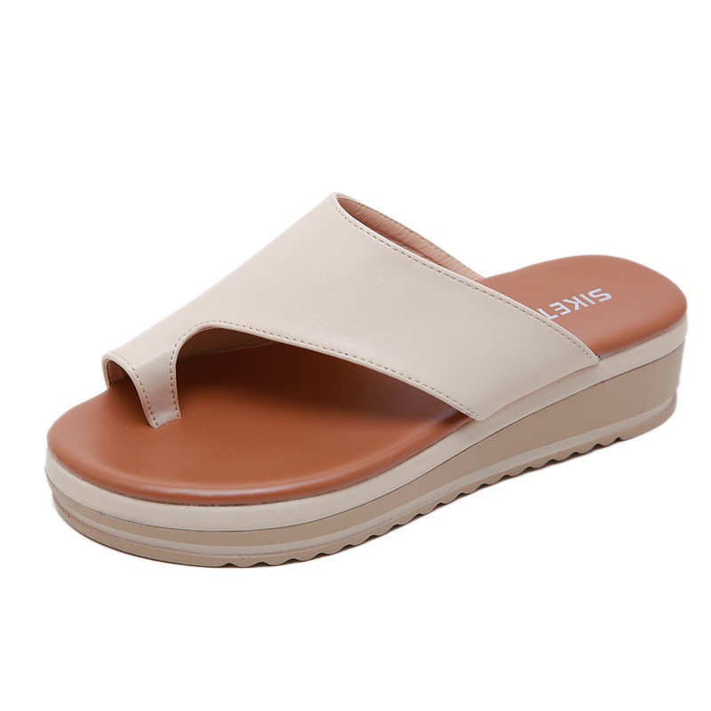 Summer women slippers beach clip toe comfortable large size casual middle heel sandals flat bottom light simple women slippers