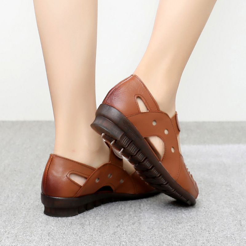 female summer shoes women’s leather non slip soft sole comfortable flat sandals mother walking shoes women beach shoes