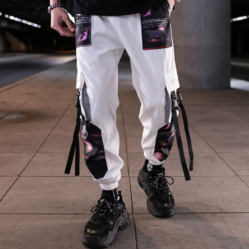 Men Hip Hop Black Cargo Pants joggers Sweatpants Overalls Men Ribbons Streetwear Harem Pants New Fashions Trousers