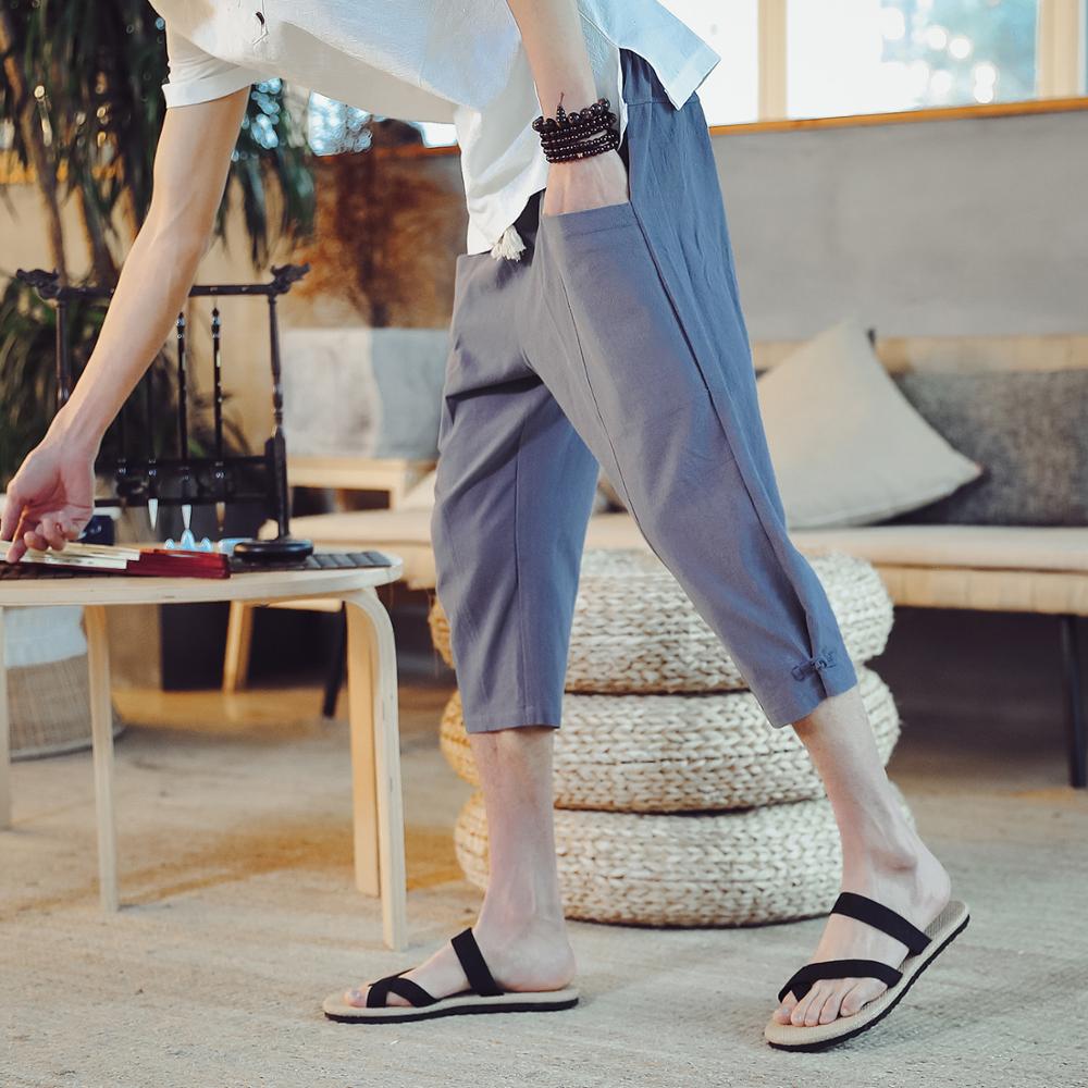 New Men Summer Cotton Linen Harem Pants Fashion Baggy Casual Loose Cropped Pants Drawstring Male Trousers Streetwear