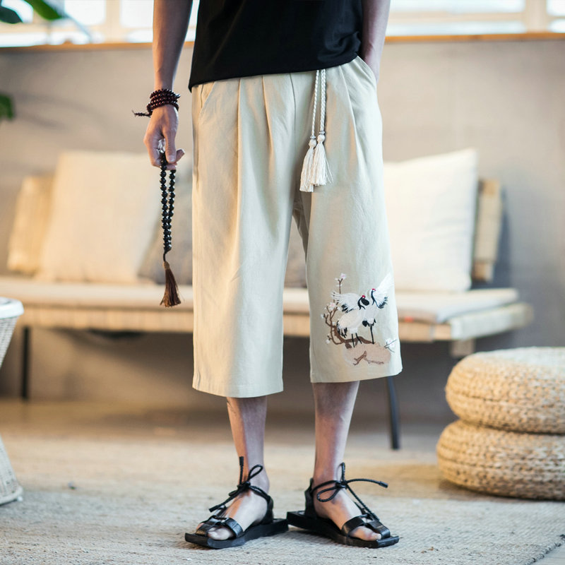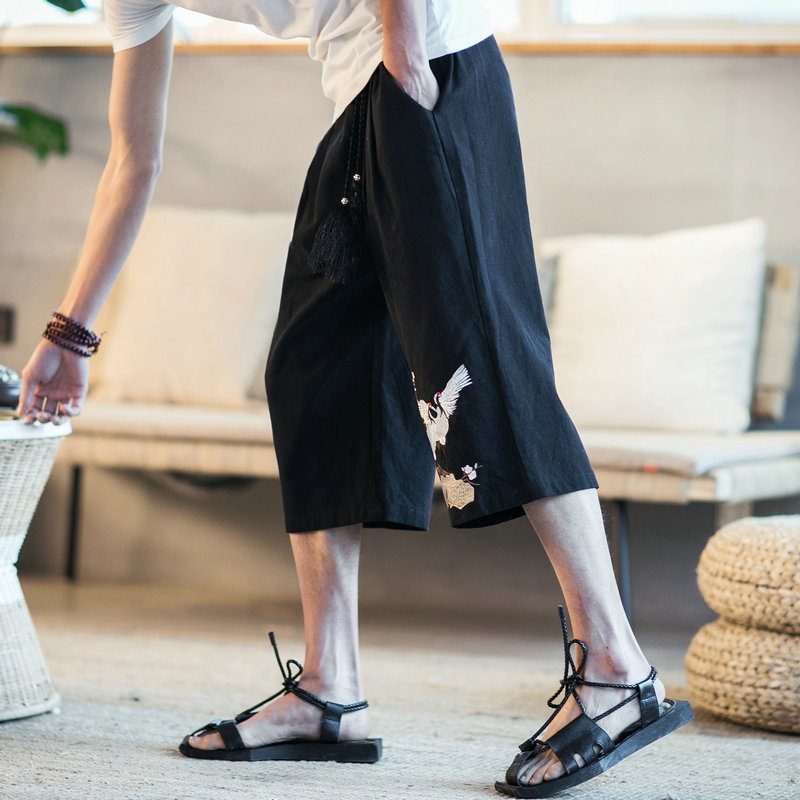New Men Summer Cotton Linen Harem Pants Fashion Baggy Casual Loose Cropped Pants Drawstring Male Trousers Streetwear