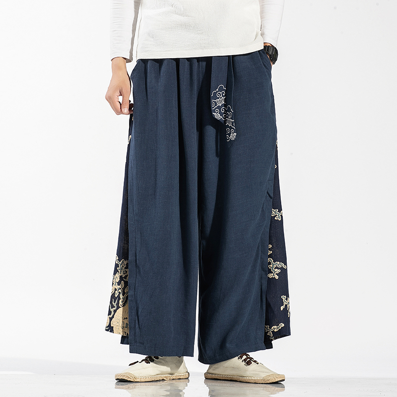 Male Japan Style Wide Leg Casual Trousers Men Oversize Vintage Pants Mens New Linen Fashion Harem Pants Streetwear M-5XL
