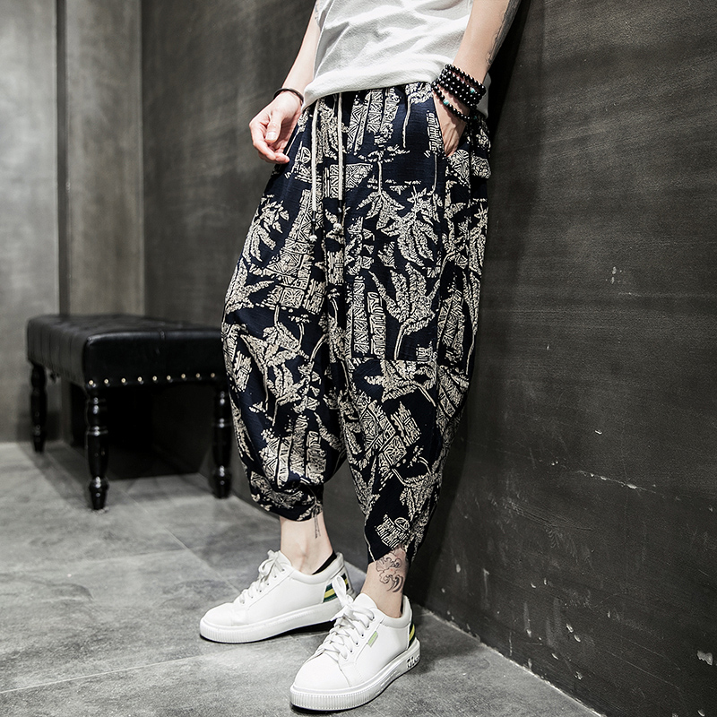 Cotton Linen Harem Pants Men Joggers Man Summer Casual Trousers Male Japanese Sweatpants New Harajuku Large Size 5XL
