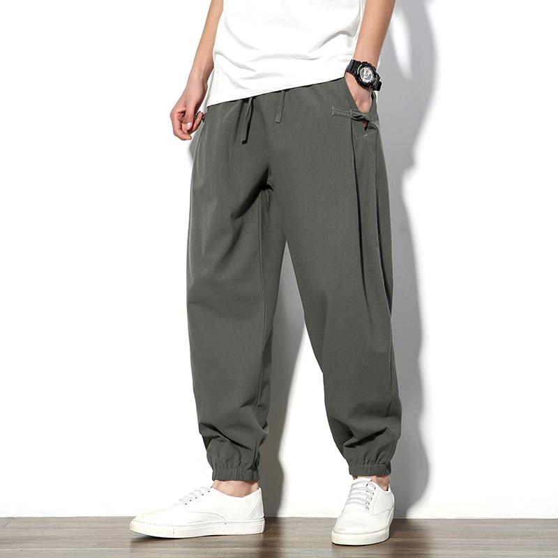 New Men Summer Cotton Linen Harem Pants Fashion Baggy Casual Loose Cropped Pants Drawstring Male Trousers Streetwear
