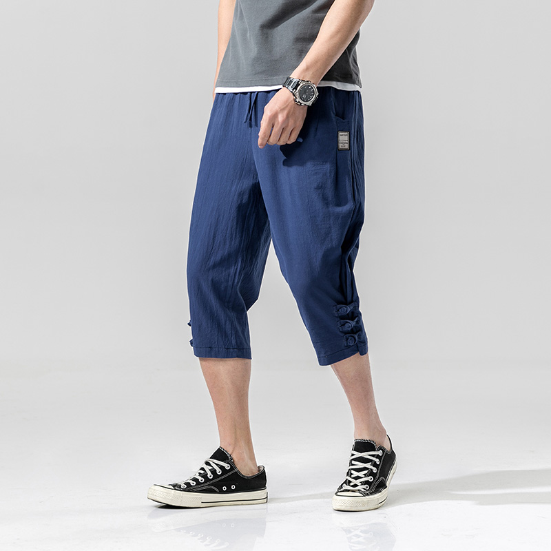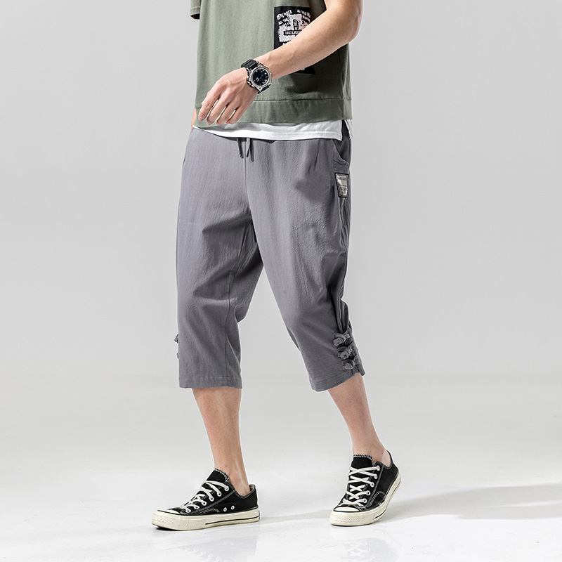 New Men Summer Cotton Linen Harem Pants Fashion Baggy Casual Loose Cropped Pants Drawstring Male Trousers Streetwear