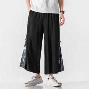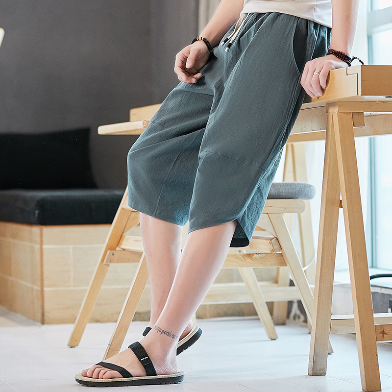 New Men Summer Cotton Linen Harem Pants Fashion Baggy Casual Loose Cropped Pants Drawstring Male Trousers Streetwear