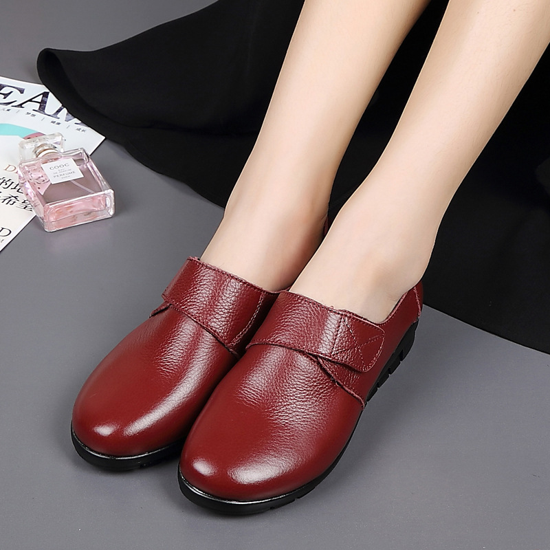 Leather flat bottom large size women’s shoes casual comfortable non-slip soft leather shoes spring and autumn mother work shoes