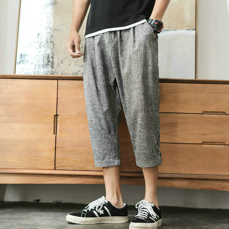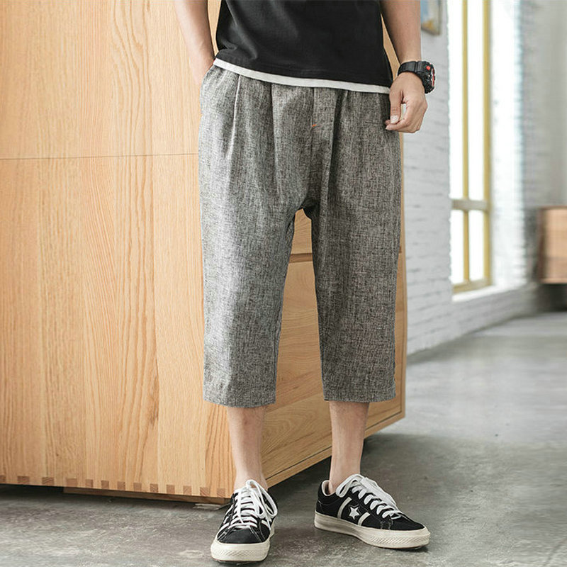 Cotton Casual Harem Pants Men Joggers Man Summer Trousers Male Hip Hop Streetwear Baggy Sportswear Calf Length Pants