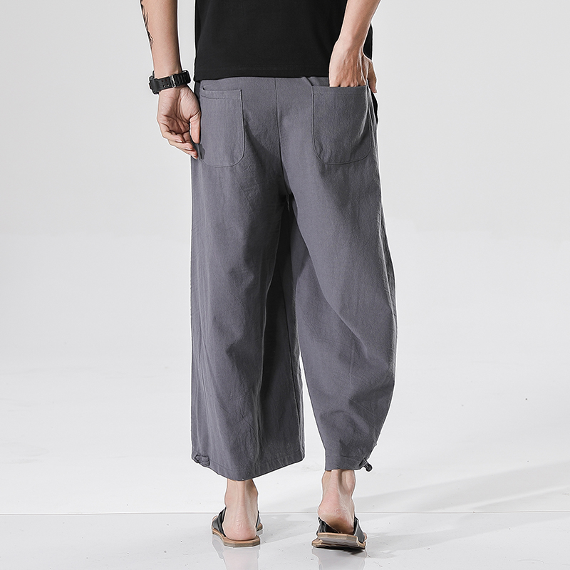 Summer Mens Wide Leg Crotch Pants Male Casual Harem Pants New Fashion Cotton Linen Men Jogging Pants Large Size M-5XL