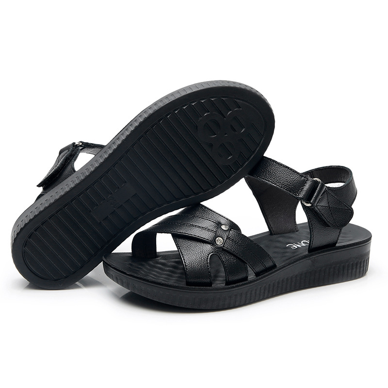 Summer middle-aged mother sandals flat bottom soft comfortable leather middle-aged and elderly outdoor non-slip female sandals
