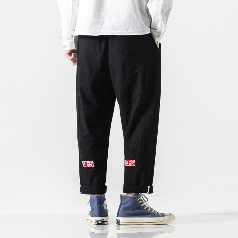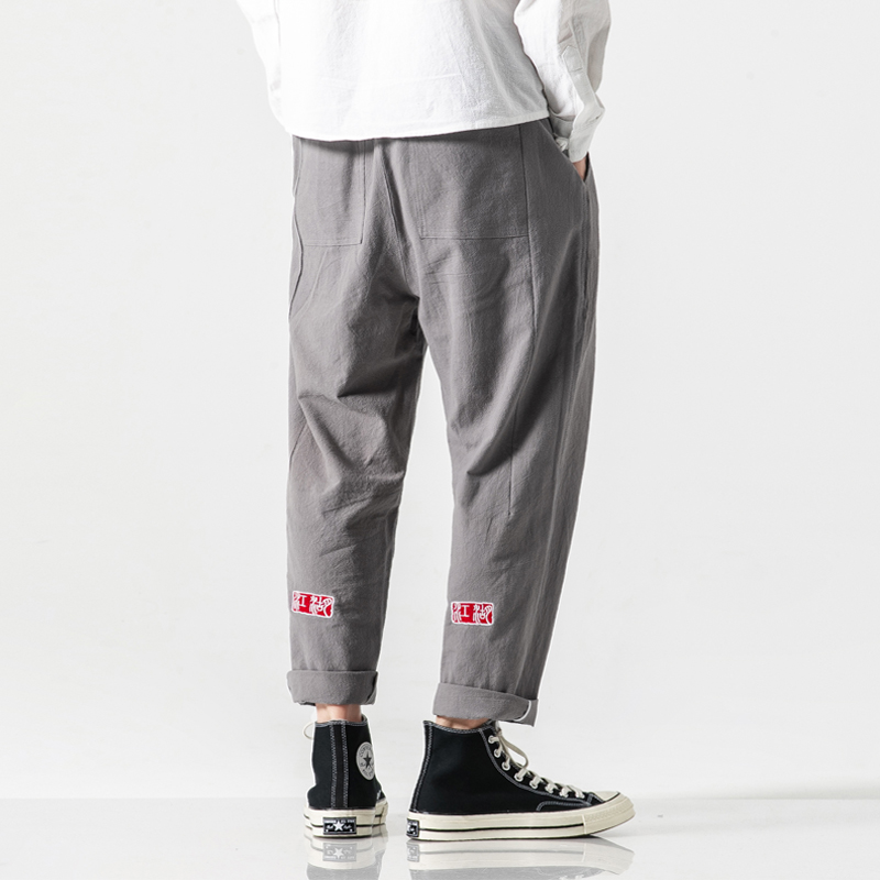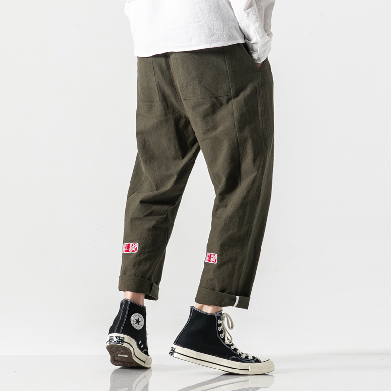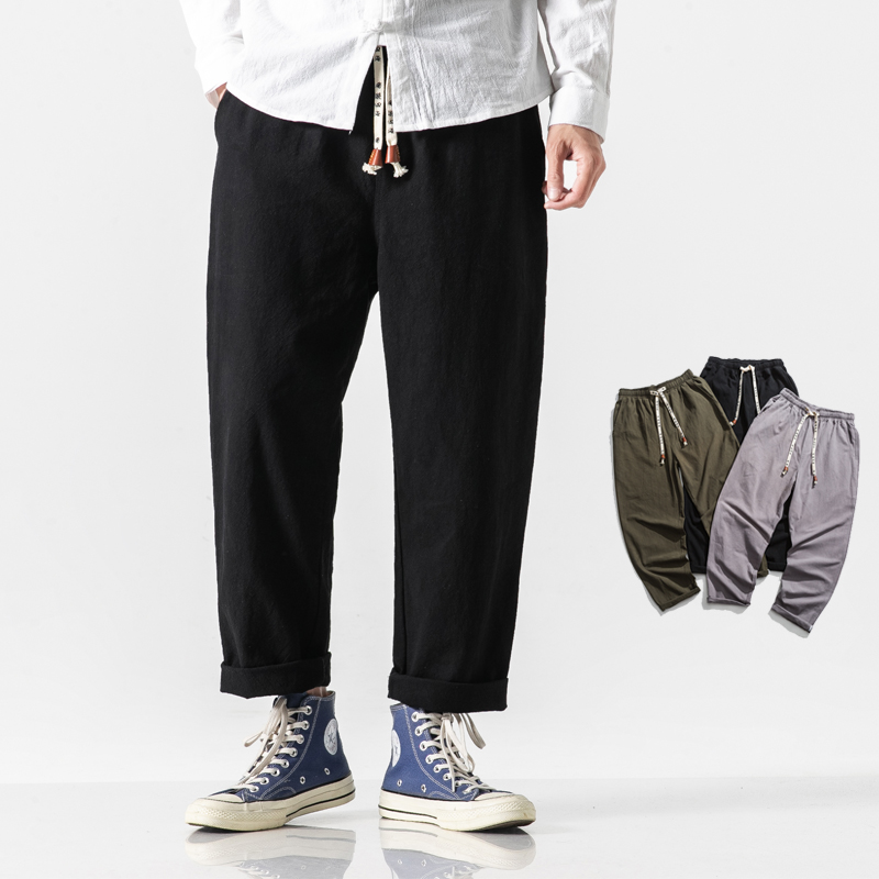 New Men Summer Cotton Linen Harem Pants Fashion Baggy Casual Loose Cropped Pants Drawstring Male Trousers Streetwear