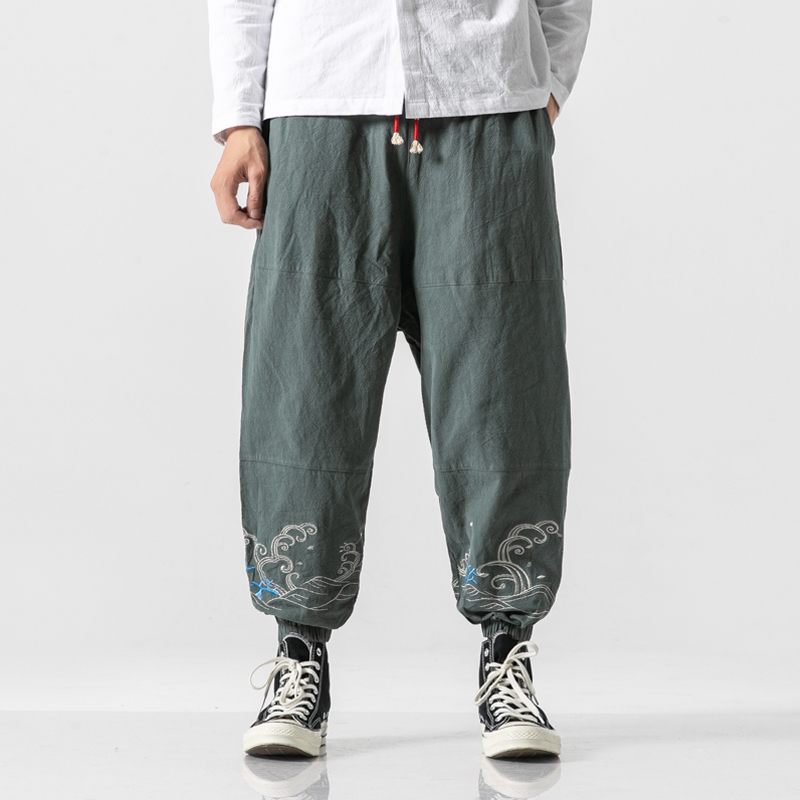 Embroidery Men Harem Pants Streetwear Mans Jogger Sweatpants Big Size Cotton Trousers Male Vintage Loose Cargo Pants 5XL
