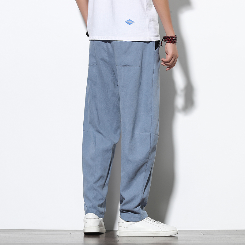 Dropshipping Male Sweatpants Joggers Autumn Korean Mens Cotton Linen Loose Sweatpants Men Solid Harajuku Streetwear Harem Pants