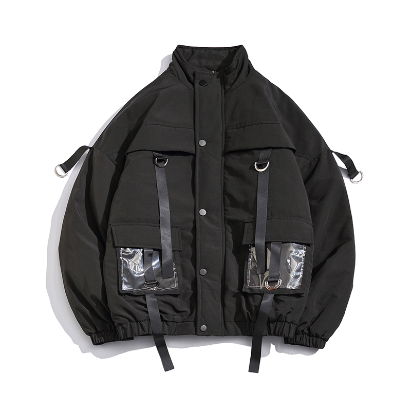 Streetwear Hip Hop Men Bomber Jacket Man Harajuku Ribbons Pockets Windbreaker Korean Style Women Fashions Clothing