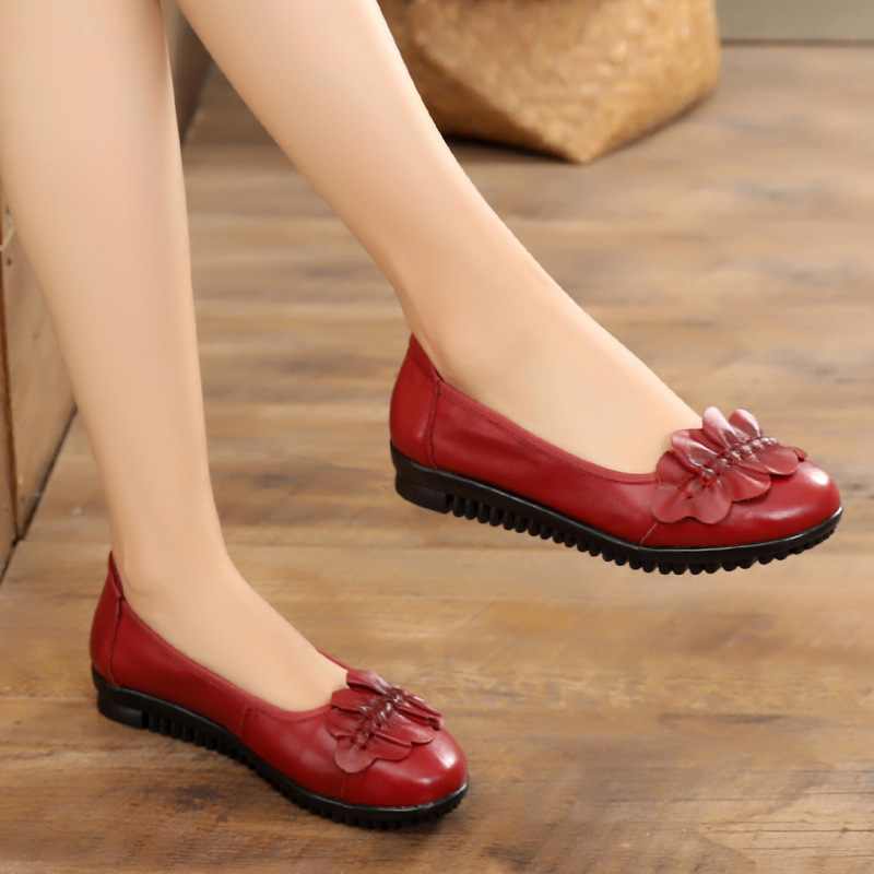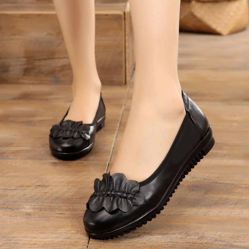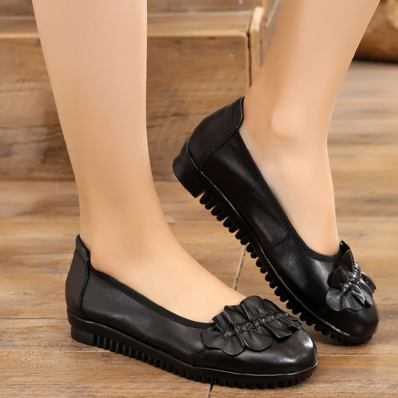 Spring autumn new leather mother flat single shoes middle-aged soft comfortable large size woman shoes grandmother flat shoes