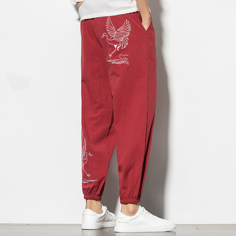 Men Harem Pants Autumn Summer Male Trousers Korean Style Cotton Linen Printed Full Pants Drawstring Sweatpants Men