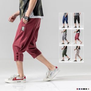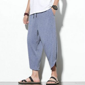 Summer Men Harem Pants Ankle-Length Cotton Linen Loose Wide Leg Baggy Mens Joggers Pants Casual Men Trousers Streetwear