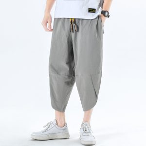 New Men Summer Cotton Linen Harem Pants Fashion Baggy Casual Loose Cropped Pants Drawstring Male Trousers Streetwear